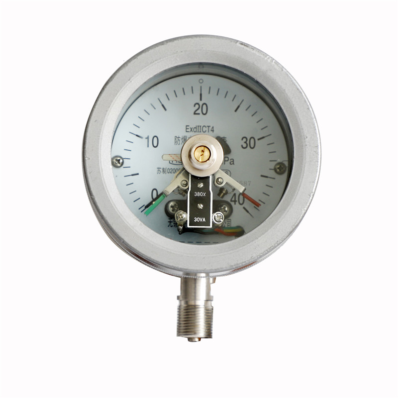防爆感應(yīng)接點壓力表專用于周圍環(huán)境有可燃介質(zhì)及爆炸性混合物危險的場所,測量液體、氣體的壓力,有自動控制、報警等功能。儀表采用了無觸點感應(yīng)開關(guān),具有很高的安全可靠性。