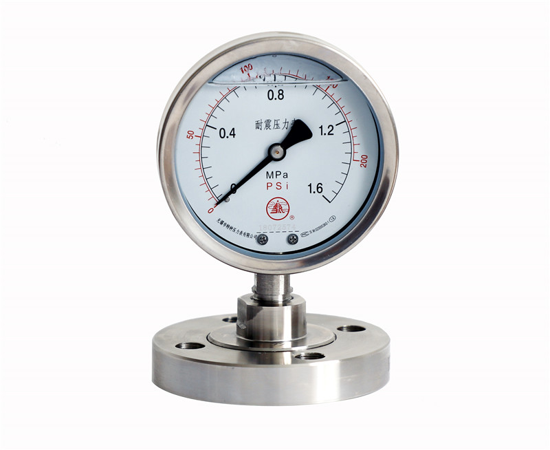法蘭式隔膜壓力表采用間接測量結構,用隔離膜片將被測介質與敏感元件隔開,與設備采用法蘭連接,適用于測量強腐蝕、高溫、高粘度、易結晶、易凝固、有固體浮游物的介質壓力以及必須避免測量介質直接進入通用型壓力儀表和防止沉淀物積聚且要易清洗的場合。隔離器有多種材料,以適應各種不同腐蝕性介質。儀表適用于化學工業、化纖、合成纖維、石油、染化、制堿等工業,并有各種材質的隔離膜片及各種公稱通徑法蘭接口形式以供不同的工礦條件選用。本公司可根據用戶需要,設計、制造特殊用途的法蘭式隔膜壓力表產品,歡迎來人來電、來函洽談!