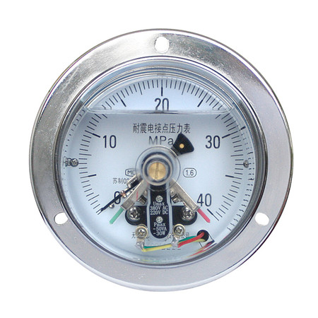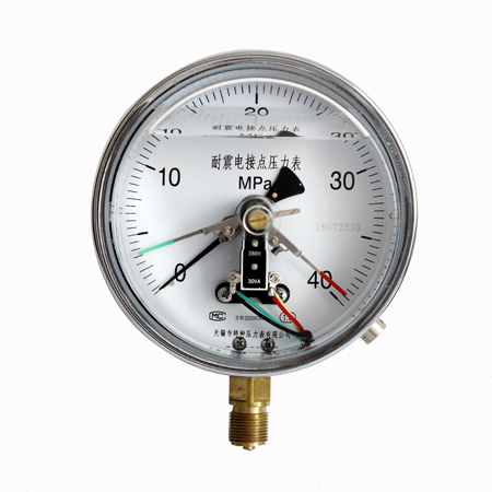 耐震電接點壓力表具有抗介質脈動和沖擊載荷,耐環境振動等優異特性,適用測量對銅和銅合金無腐蝕性的氣體,液體或蒸汽等介質的壓力測量和控制,儀表設上、下限二位開關型接點裝置(可選雙上限或雙下限接點裝置),在壓力達到設定值時發出信號或通斷控制電路,供作業系統自動控制或發訊用。其抗振結構可有效抑制指針的抖動、沖擊,保護接點,使儀表指示清晰,電信號切換可靠,工作穩定。廣泛應用于機械、化工、石油、冶金、電力等工業生產過程壓力測量和控制。