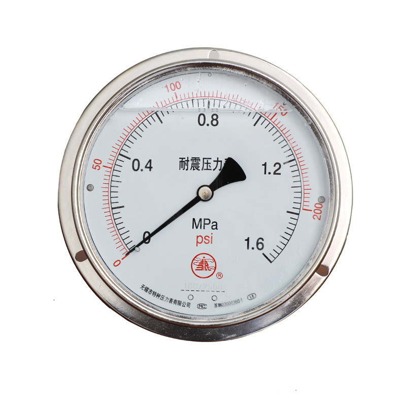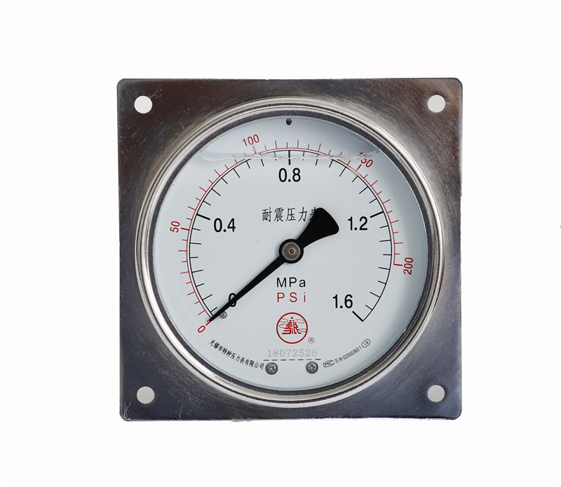 軸向帶邊耐震壓力表是在普通壓力表的基礎上,表殼為全密閉型結構,內部填充阻尼液(一般為甘油或者硅油)并加裝緩沖機構,減輕環境劇烈振動及介質脈沖對儀表示值的影響,軸向帶邊耐震壓力表利用自帶的圓形或者方型安裝盤固定在設備面板上,便于操作工人隨時觀察壓力變化。耐震型壓力表指示穩定清晰。廣泛應用于液壓機械、石油、化工、冶金、礦山機械、電力設備等部門,測量對銅和銅合金無腐蝕性介質的壓力。